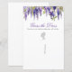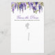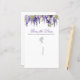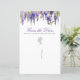 It has purple wisteria watercolor on the upper border. Under it, the title is written in an elegant calligraphy, in purple, with instructions in smaller black letters under it. Under the text, there is a Regency lady as a profile silhouette in grey, as a starting point for the guest's drawing.