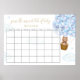 Featuring a cute teddy bear cub in a blue hot air balloon, this chic fun baby shower guess-the-due-date poster can be personalised with your special message and baby name. Designed by Thisisnotme©