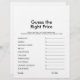 This guess the right price bridal shower game is a perfect activity for a rustic bridal shower celebration. The design features a beautiful font in a white background to embellish your event.