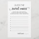Purchase this game and enjoy high quality Guess the Sweet Mess card for your event! Gender neutral Black and White design.