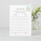 This is a Guess Their Age guessing baby shower game card. Cute blue umbrella with a fox and elephant under it on a white background on front, and yellow background with white polka-dots on back.