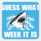 This phrase combines a playful tone with the anticipation of a special event or theme. It suggests that there's a particular week approaching that's associated with sharks, and the speaker is inviting others to guess what it is.