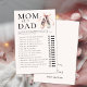 An elegant girl baby shower "guess who, mum or dad" game sheet for a girl baby shower party with a ballet / ballerina theme. It features a watercolor illustration of a pair of elegant ballerina shoes in watercolor. Part of the "Baby Ballerina Shower Invitation Suite" girl baby shower invitation set.