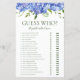 This lovely blue hydrangeas Guess Who? bridal shower game sheet is elegant and charming - perfect for any garden, botanical, rustic, romantic, floral, formal or vintage wedding. Its exquisite combination of graceful multi-hued blue hydrangeas and wispy greenery is flowy, delicate, and beautiful. This fun and easy game is sure to bring lots of laughter to any bridal shower! You'll be amazed at how many answers people will know. In seconds you can see how your game sheet will look. Simply select Personalise this Template and type in the names of the bride and groom.