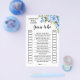 Blue Flowers Guess who English and Spanish version games included (front and back). Change wording to the design for English and Spanish versions. For additional customisation (change other wording, font colour, font style ), click on personalise, scroll down and click on link "click to customise further".