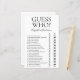 This lovely modern Guess Who? bridal shower game sheet is perfect for any shower. This fun and easy game is sure to bring lots of laughter to any bridal shower. Simply give a sheet to each guest (don't forget the pens) and let the fun begin! You'll be amazed at how many things people know about the bride and groom. To make this game your own simply select Personalise this template and type in the bride's name and the groom's name.
