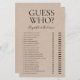 This lovely rustic Guess Who? bridal shower game sheet is simple and charming - perfect for any shower. This fun and easy game is sure to bring lots of laughter to any bridal shower. Simply give a sheet to each guest (don't forget the pens) and let the fun begin! You'll be amazed at how many different things people know about the bride and groom. To make this game your own simply select Personalise this template and type in the bride's name and the groom's name.