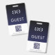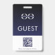 Keep your guests easily identifiable and safe with this custom guest badge. The badge features a sleek navy blue and white design with the word "Guest" prominently displayed in simple font. Add your own logo for a personalised touch, and include a QR code for easy access to additional information or a virtual tour. The text "Please wear badge at all times" ensures that your guests are always easily recognisable and helps maintain security throughout your facility.