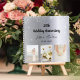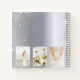 A faux silver metallic looking background, decorated with faux glitter dust. Personalise and add a title, your names, a date and 3 wedding photos.