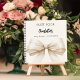 A beige, cream background colour. Decorated with a large bow. Personalise and add the name and date.