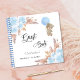 For an elegant and modern baby shower. A white background. Decorated with light blue, florals, pampas grass and a teddy bear holding a balloon.