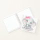 A baby shower guest book celebrating a baby girl. A stylish white background with a cute elephant girl. Add a name and a date.