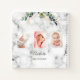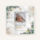 For an elegant baptism, gender neutral. Marble stone print as background, decorated with eucalyptus greenery, faux gold glitter dust and a golden cross. Personalise and add a square sized photo on the front, the name of the child and the date of the baptism. Black and golden letters.