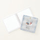 A faux silver metallic looking background, decorated with blue faux glitter dust and a golden cross. Personalise and add a square sized photo on the front, the name of the child and the date of the baptism.