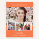 Create your own unique photo collage. Use four, 4 of your favourite photo. Personalise and a name and age/dates. A coral, orange background colour, white text.