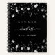 A guestbook for a feminine and glamourous 21st (or any age) birthday party. A stylish black background with faux silver stars. Add your name, age 21/text.