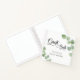 A white background colour. Decorated with elegant eucalyptus greenery sprigs. Add a name and a date.