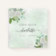 A white background color. Decorated with eucalyptus greenery, golden foliage and faux gold glitter dust. Add a name, age and a date.