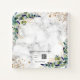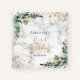 Marble stone print as background. Decorated with eucalyptus greenery, golden foliage and faux gold glitter dust. Add a name, age and a date.