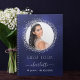 A guestbook for a feminine and glamourous 21st (or any age) birthday party. A stylish navy blue background with faux silver glitter sparkles round the photo. The blue colour is uneven. Add your name, age 21, date and a photo.
