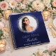 A guestbook for a feminine and glamourous 21st (or any age) birthday party. A stylish navy blue background with faux silver glitter sparkles round the photo. The blue colour is uneven. Add your name, age 21, date and a photo.
