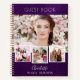 Create your own unique photo collage. Use four, 4 of your favourite photo. Personalise and a name and age/dates. A purple, uneven coloured background, white text.