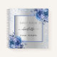 Faux silver looking background decorated with navy blue and light blue florals, flowers. Personalize and your name and date.