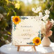 Golden watercolored background. Decorated with sunflowers, eucalyptus greenery, golden foliage and faux gold glitter dust. Add a name, age and a date.