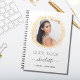 A guest book for a feminine and glamourous 21st (or any age) birthday party. A stylish white background with faux gold glitter sparkles round the photo. Add your name, age 21, date and a photo.