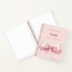 A blush pink background colour. Decorated with a large pink bow.  Personalise and add your name, age.