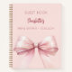 A blush pink background colour. Decorated with a large pink bow. Personalise and add a name, date.