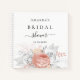 A chic white background with rose gold and white florals, silver foliage. Personalise and add a names, and date.
