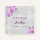 A faux silver looking background, decorated with sparkles and pink and violet flowers, roses. Add a name, text.