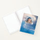 A guest book for a memorial service or funeral. A blue sky as background. Personalise and add a photo, name and dates. White letters. Text: Forever in our hearts.