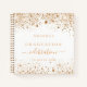 A stylish white background with dark faux gold glitter dust. Personalise and add a name and the date on the front.  Space for a saying on the back.