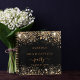 A stylish black background with dark faux gold glitter dust. Personalize and add a name and the date. Can be used as guest book or planning the party.