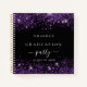 A stylish black background with purple faux glitter dust. Personalise and add a name and the date. Can be used as guest book or planning the party.