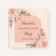 For an elegant and modern graduation party. Golden marble print as background and a rose gold arch frame. Decorated with rose gold, pink florals, pampas grass.