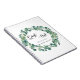 A white background colour. Add a name and a date. Decorated with a watercolored eucalyptus greenery wreath. The text: Guest Book is written with a modern hand lettered style script.