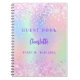 A guest book for a Sweet 16, 16th birthday party. A trendy holographic coloured background in pink, purple, mint green. Decorated with confetti in pink. Personalise and add a name, the name is written with a girly modern hand lettered style script