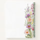 A white background colour. Decorated with wildflowers in pink, purple and yellow. Add a name and a date. Text: Love is in Bloom