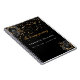 A guest book for a memorial service or funeral. A classic black background decorated with black florals and golden confetti, sparkles on front. Personalise and add a name and dates.