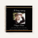 A guest book for a memorial service or funeral. A classic black background, a faux gold frame on the front. Personalise and add a photo, name and dates.
