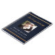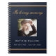 A guest book for a memorial service or funeral. A dark blue background, a faux gold frame on the front. Personalise and add a photo, name and dates.