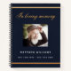 A guest book for a memorial service or funeral. A dark blue background, a faux gold frame on the front. Personalise and add a photo, name and dates.