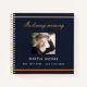 A guest book for a memorial service or funeral. A classic dark blue background, a faux gold frame on the front. Personalise and add a photo, name and dates.