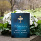 A guest book for a memorial service or funeral. A classic dark blue sky background and a golden cross. Personalise and add a name and dates. White letters.