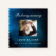 A guest book for a memorial service or funeral. A blue sky as background. Personalize and add a photo, name and dates. White letters.