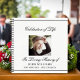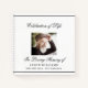 A guest book for a memorial service or funeral. A white background, a black frame on the front. Personalise and add a photo, name and dates. Black text.