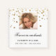 A stylish white background with golden hearts. With the text: Forever in our hearts, written with an elegant hand lettered style script. Add a name and dates, a photo.